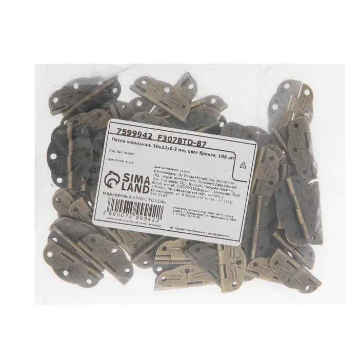Петля железная, 30×22×0.3 мм, цвет бронза, 100 шт. — Характеристики