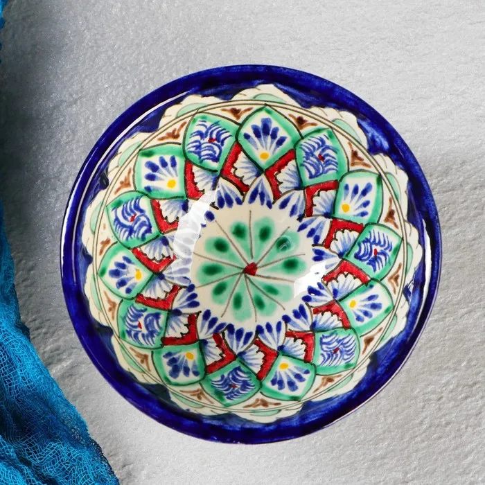 Эта пиала станет не только функциональным предметом посуды, но и украшением любой кухни или сервировки. Ее дизайн подчеркнет ваше уважение к традициям узбекского ремесла и создаст особую атмосферу во время чаепитий. Каждое изделие — результат мастерства ремесленников, что делает его уникальным подарком или семейной реликвией.
