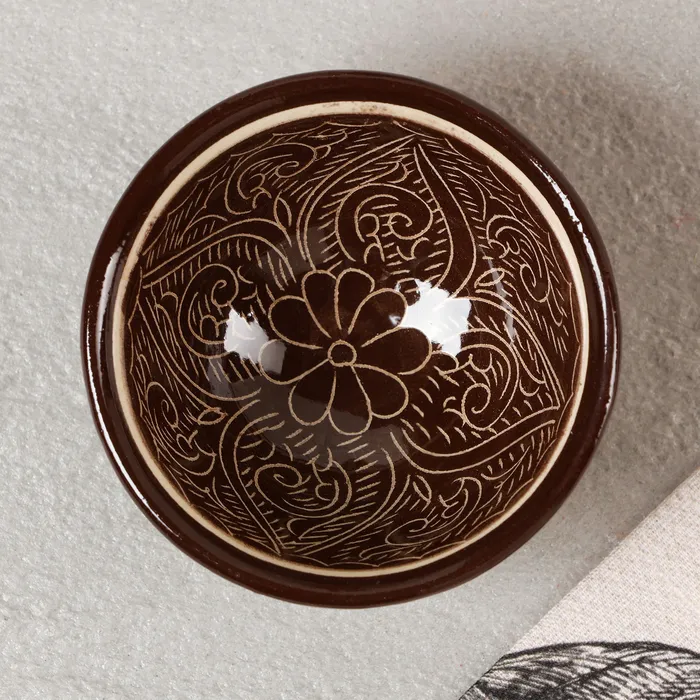 Пиала Риштанская керамика "Узоры", 8,5 см, малая коньячная, коричневая — Характеристики