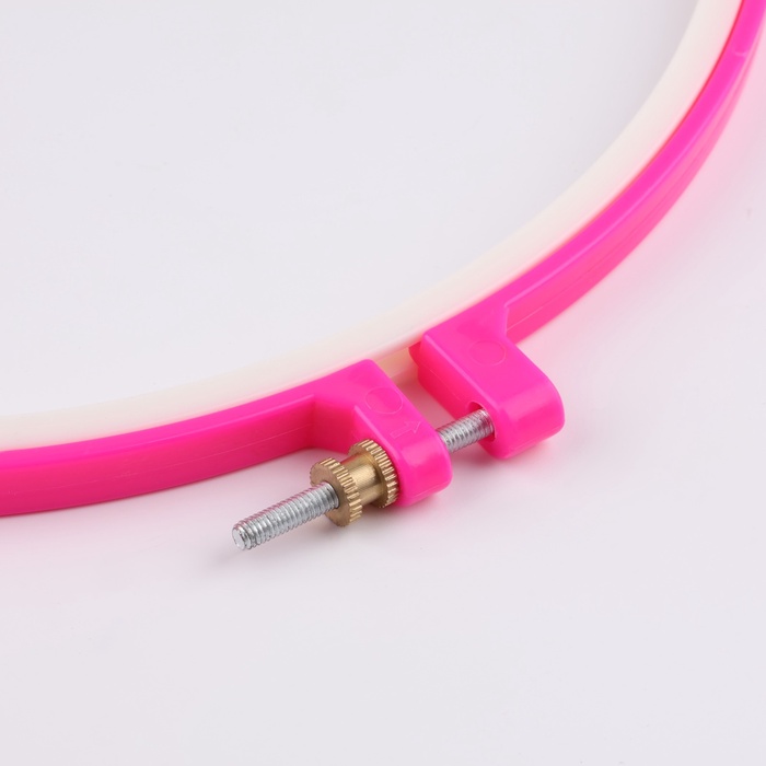 Круглые пяльцы для вышивки — идеальный инструмент для создания аккуратных и профессиональных работ. С размером 24.8 х 27 см и привлекательным розовым дизайном, они прекрасно подойдут как для начинающих, так и для опытных мастеров.