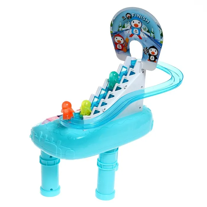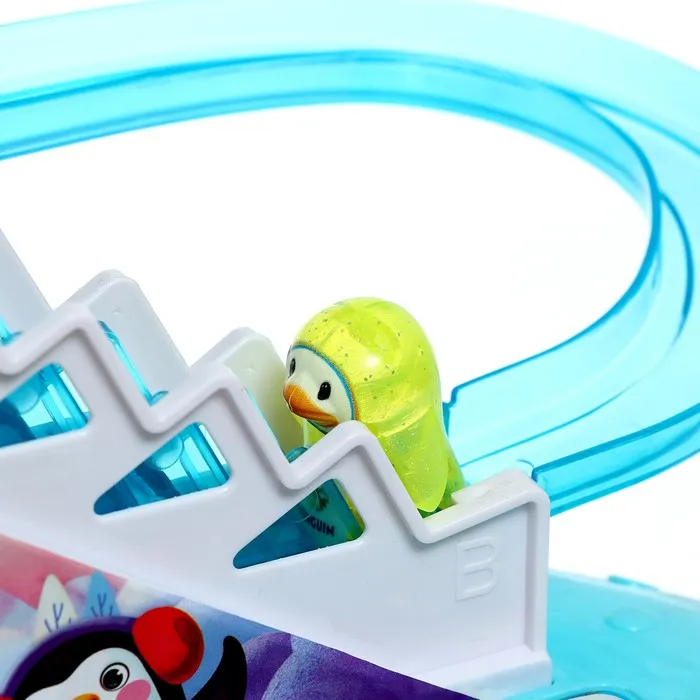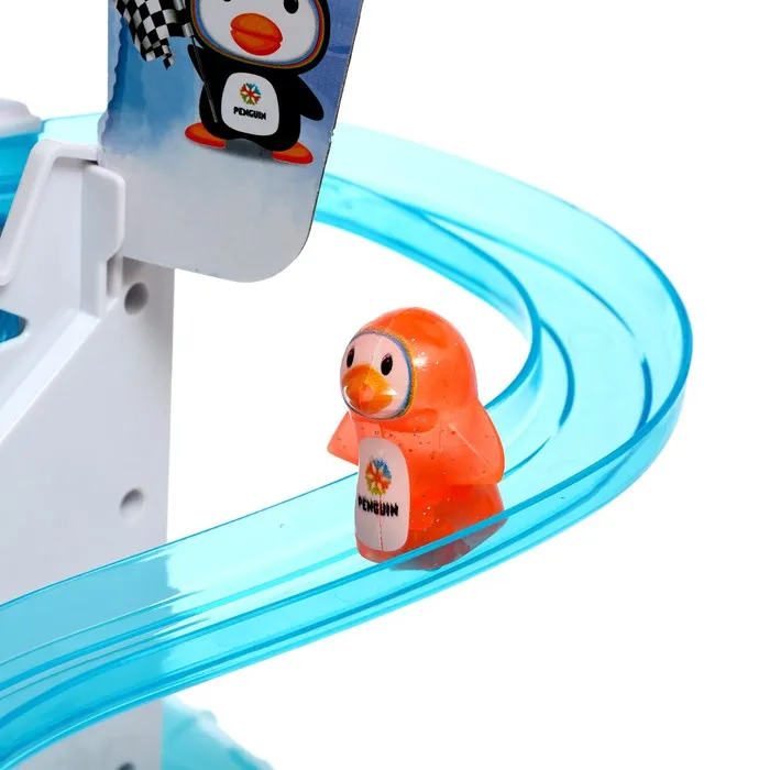 - Пингвины сами поднимаются по эскалатору и скатываются с горки.