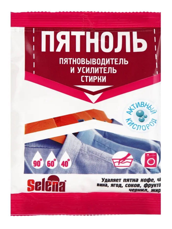 Пятновыводитель и усилитель стирки Selena «Пятноль» предназначен для отбеливания, удаления пятен, антимикробной обработки всех видов белья как при ручной стирке, так и при стирке в стиральной машине.