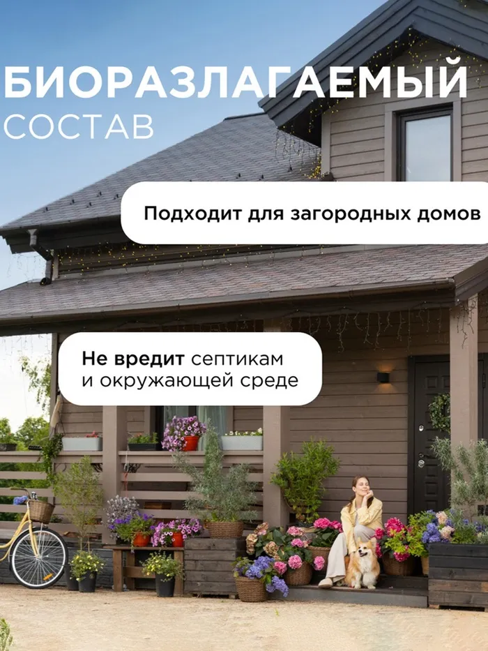 Биоразлагаемый пятновыводитель безопасен для септических установок. Попадая в среду септика, средство «понятно» для микроорганизмов и без труда распадается на простые соединения.