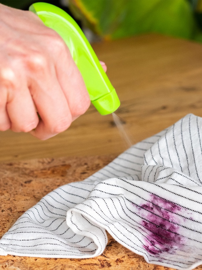 Равномерно нанесите пятновыводитель на пятно и оставьте на 5–10 минут, затем постирайте в обычном режиме. Следуйте рекомендациям, указанным на ярлыке изделия. Перед применением проверьте устойчивость окраски ткани, используя средство на незаметном участке, прополощите и дайте высохнуть. Остаточные пятна на текстиле от бета-каротина, содержащегося в моркови, перце, вишне, абрикосе и др., исчезают сами по себе под действием ультрафиолетового излучения солнечного света.