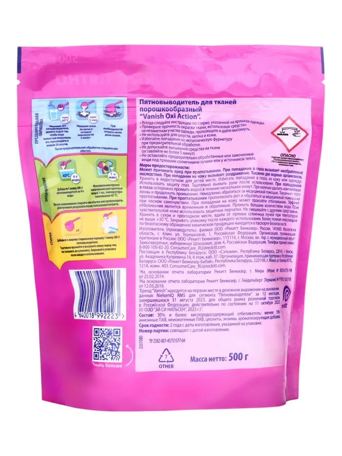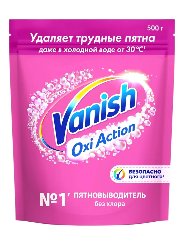 Порошкообразный пятновыводитель Vanish Oxi Action содержит активный кислород, который удаляет пятна и сохраняет цвет ваших вещей. Подходит для деликатных тканей, шерсти и шёлка. Vanish Oxi Action подходит как для белых, так и для цветных вещей.