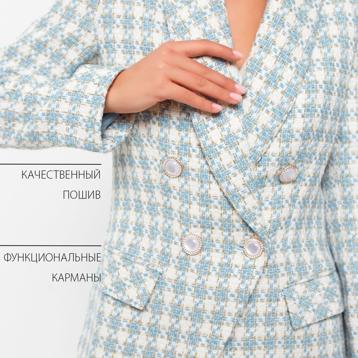 Пиджак твидовый двубортный MIST р. 42, голубой — Характеристики