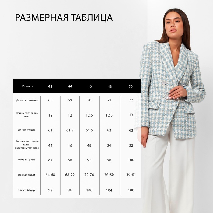 Пиджак твидовый двубортный MIST р. 44, голубой — Характеристики