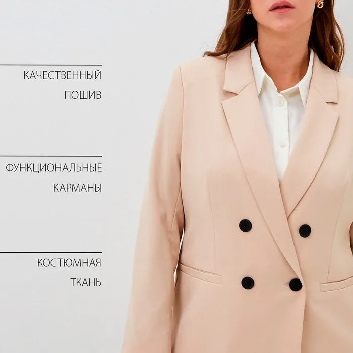 Пиджак женский двубортный MIST plus-size, р.52, бежевый — Характеристики