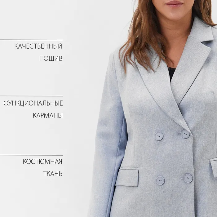 Пиджак женский двубортный MIST plus-size, р.54, серый — Характеристики