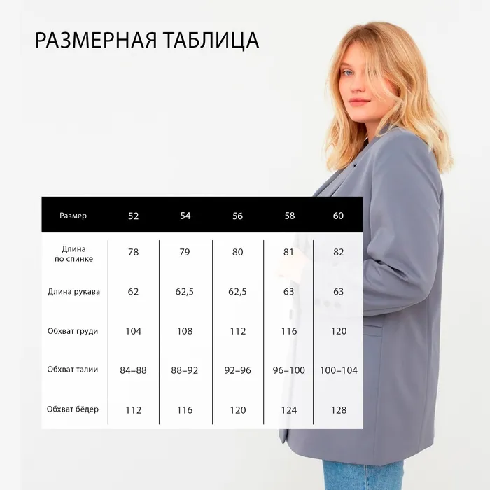 Пиджак женский двубортный MIST plus-size, размер 54, цвет серо-голубой — Характеристики