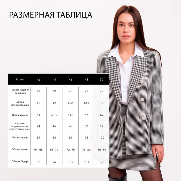 Пиджак женский двубортный MIST р. 42, чёрный/белый — Характеристики