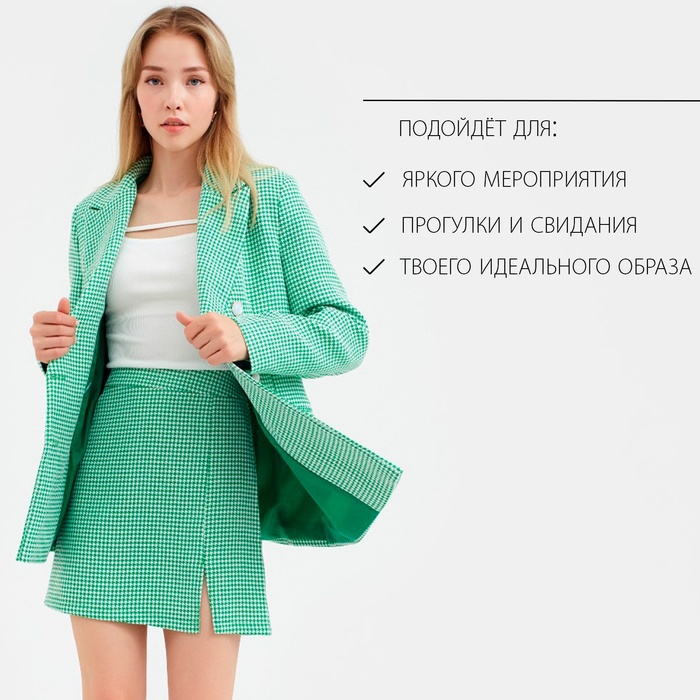 Пиджак женский двубортный MIST р. 50, зелёный/белый — Характеристики