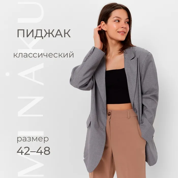 Пиджак женский MINAKU: Classic цвет серый, р-р 46-48 — Характеристики