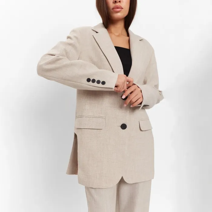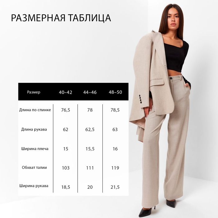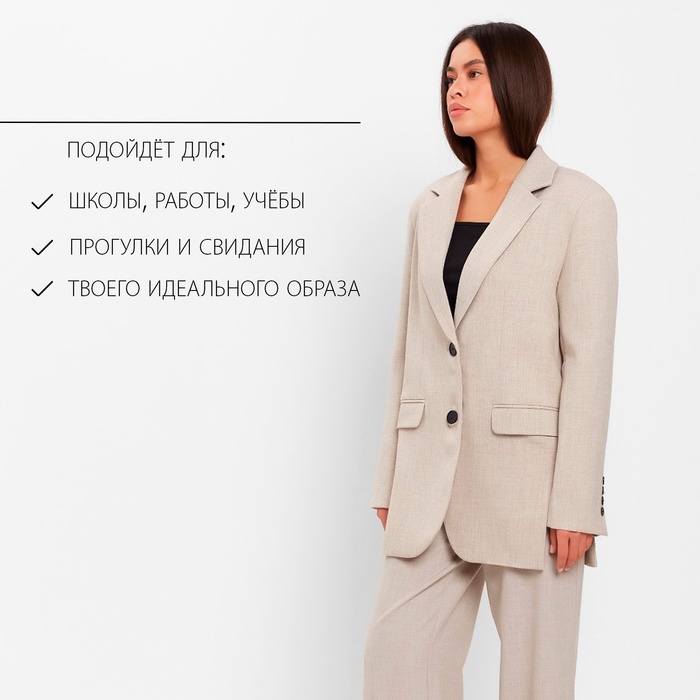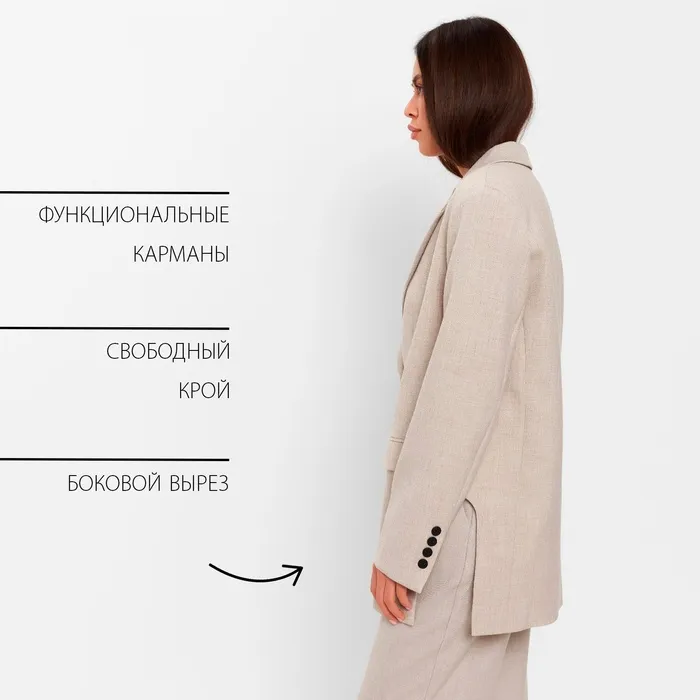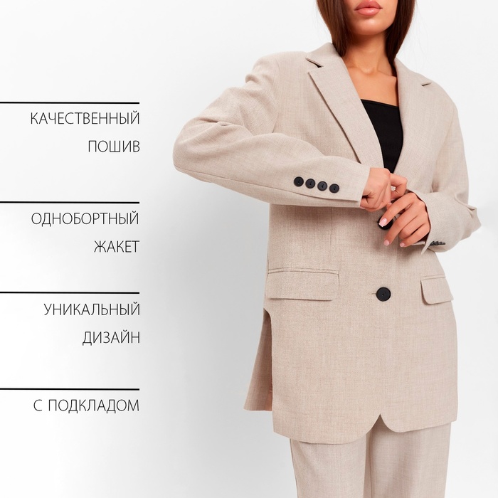 Пиджак женский с боковыми разрезами MIST размер 40-42, цвет бежевый — Характеристики