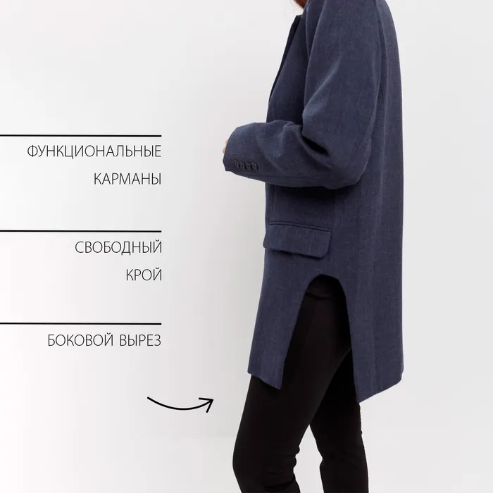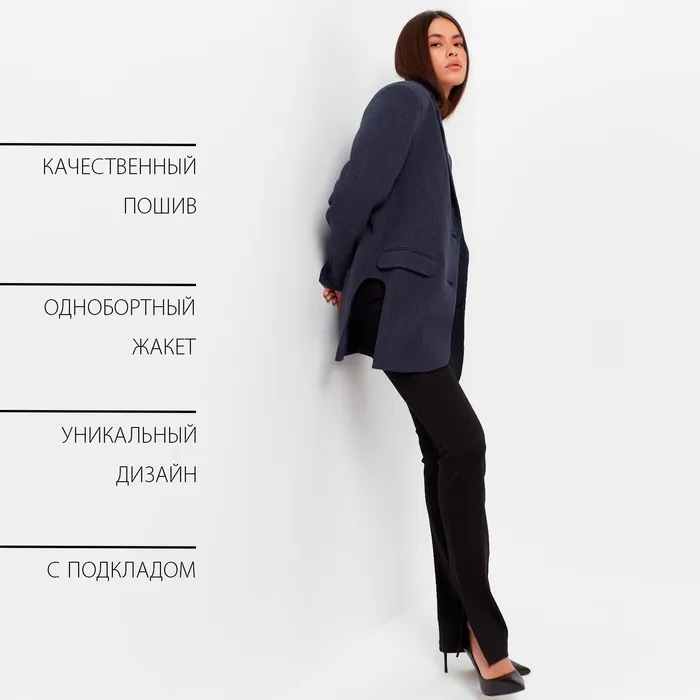 Пиджак женский с боковыми разрезами MIST размер 48-50, цвет синий — Характеристики