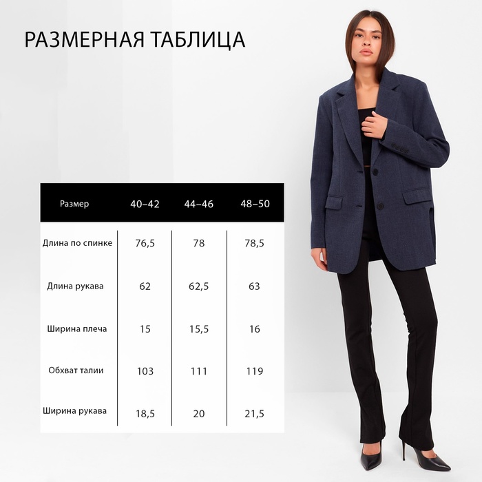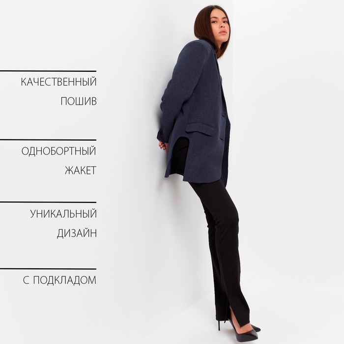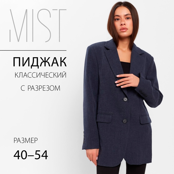 Пиджак женский с боковыми разрезами MIST размер 52-54, цвет синий — Характеристики