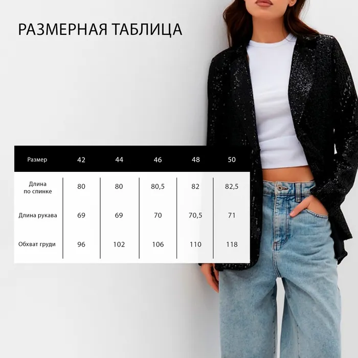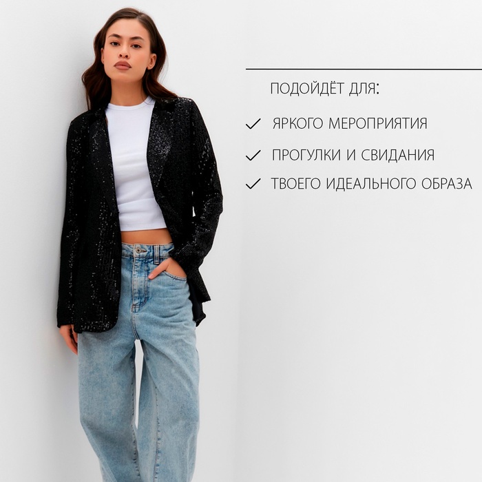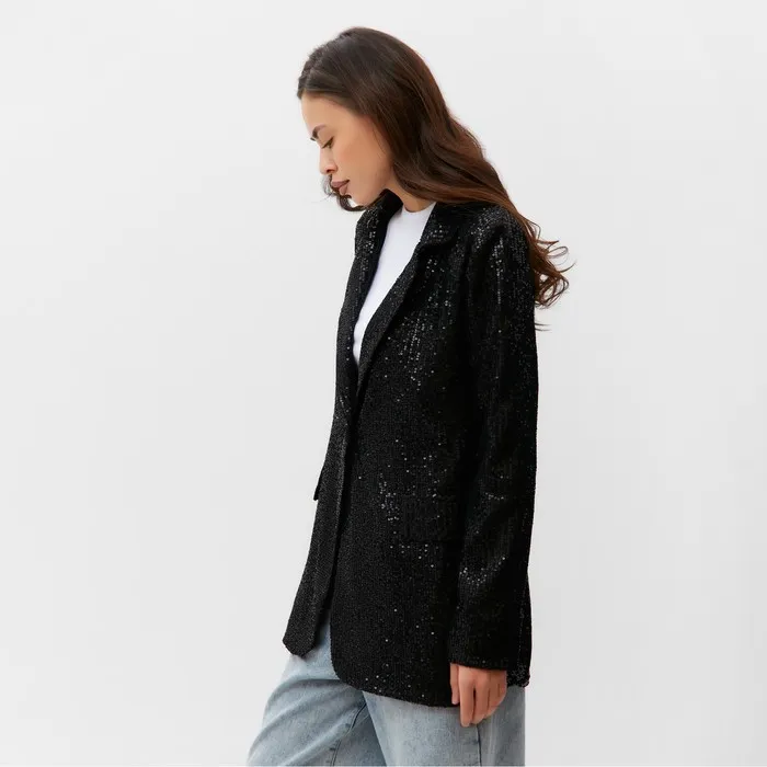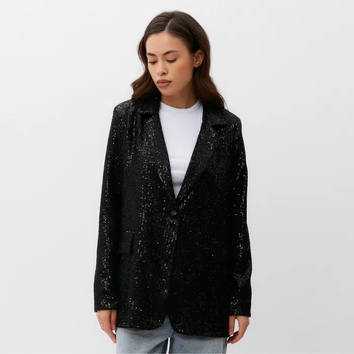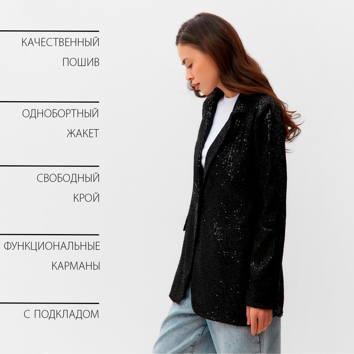Пиджак женский с пайетками MIST размер 48, чёрный — Характеристики