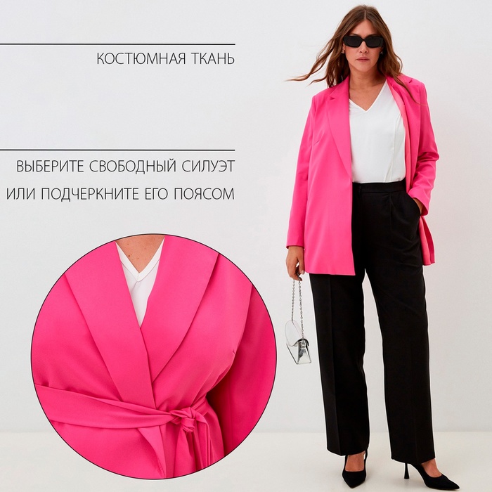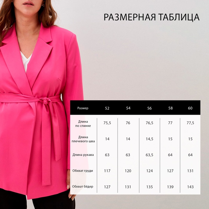 Пиджак женский с поясом MIST plus-size, р.54, розовый — Характеристики