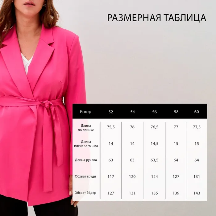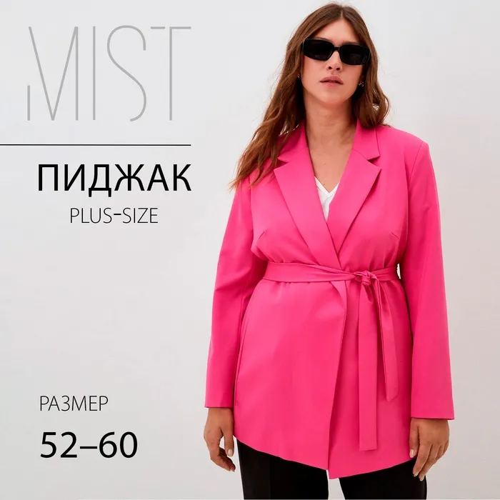 Пиджак женский с поясом MIST plus-size, р.60, розовый — Характеристики