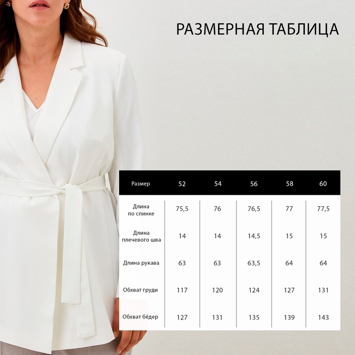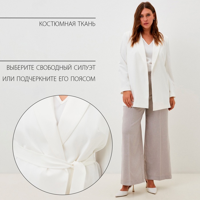 Пиджак женский с поясом MIST plus-size, размер 56, белый — Характеристики