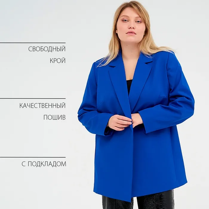Пиджак женский с поясом MIST plus-size, размер 60, цвет синий — Характеристики