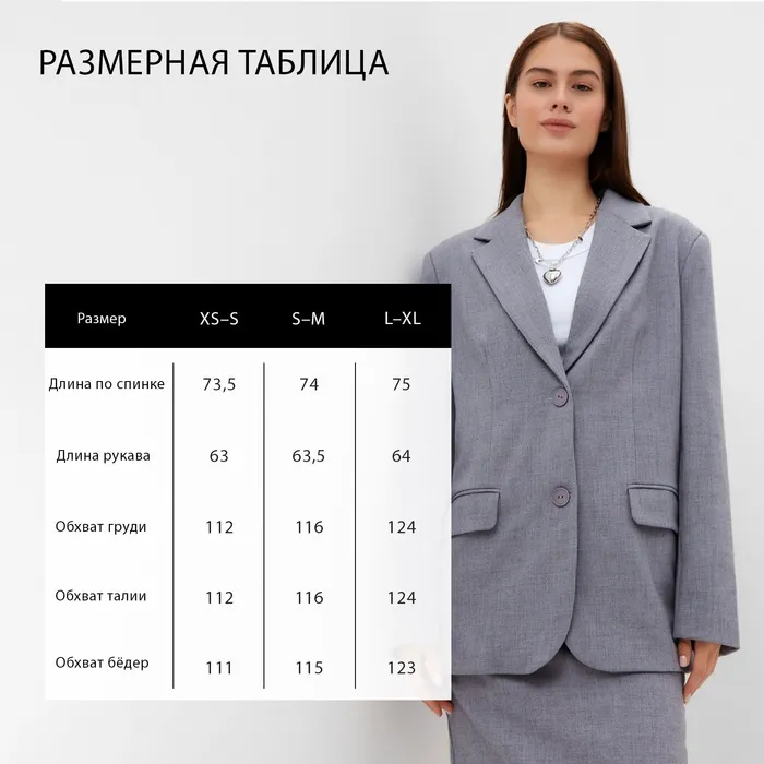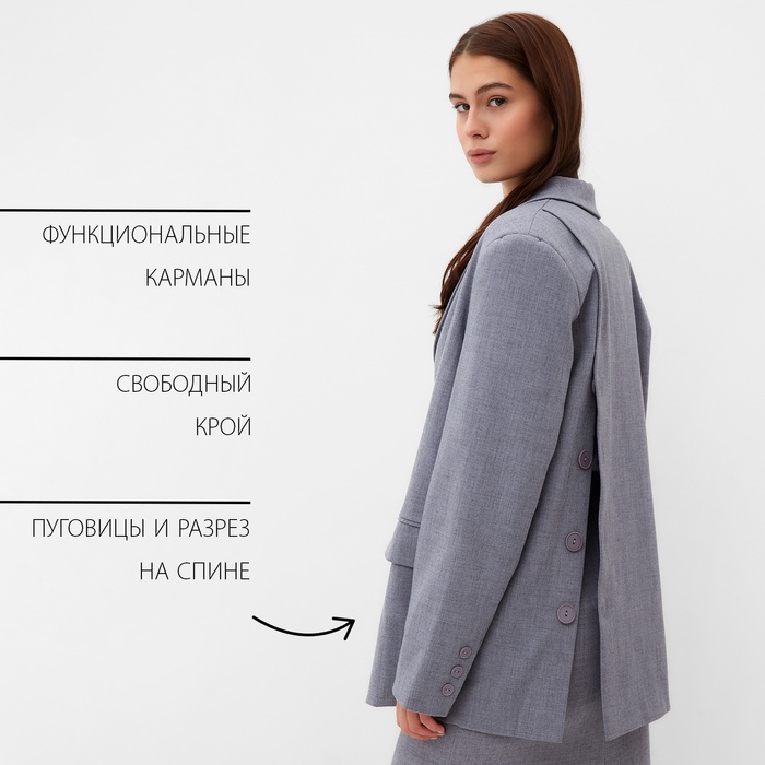 Пиджак женский с пуговицами на спине MIST, р.S-M, серый — Характеристики