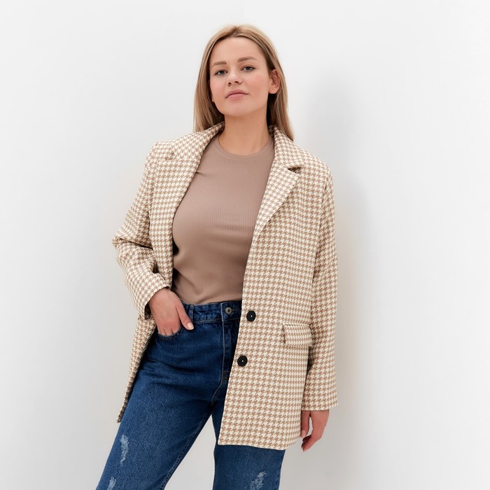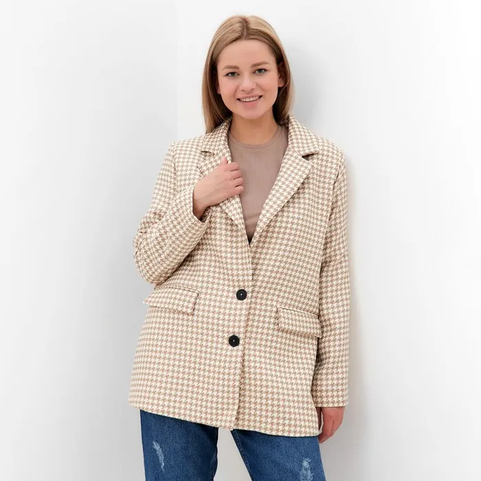 Пиджак женский, цвет светло-бежевый, гусиная лапка, размер 52 — Характеристики