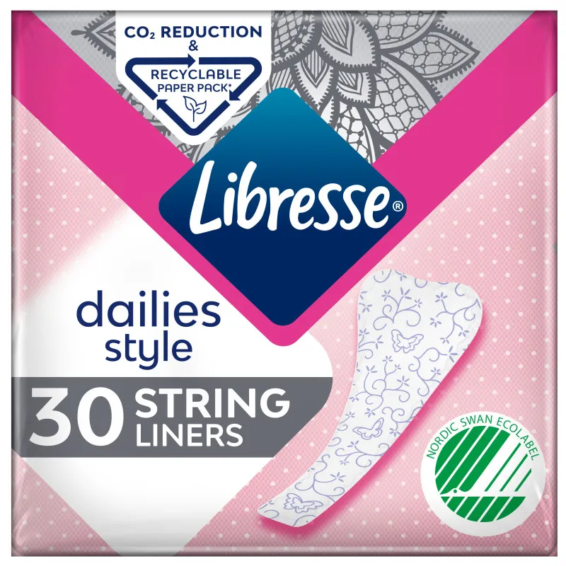 Большинство ежедневных прокладок не подходят для стрингов, особенно под облегающую одежду. Libresse String создана специально для стрингов, чтобы вы чувствовали себя комфортно и уверенно. Эти прокладки позволяют коже дышать естественным образом. В упаковке 30 штук.