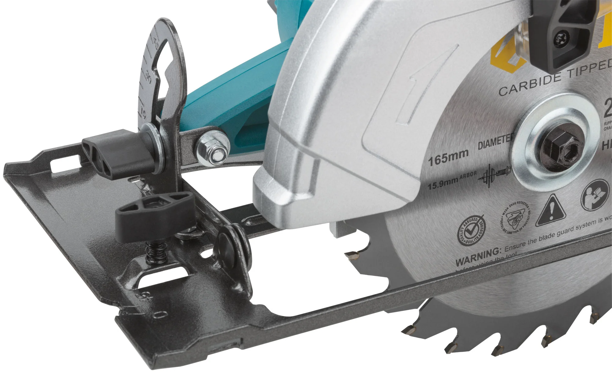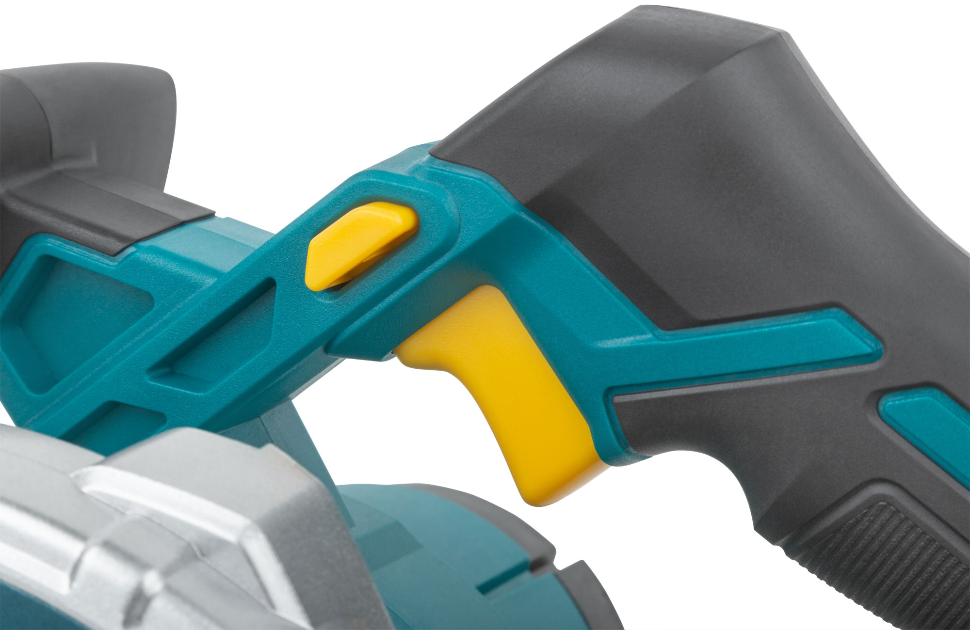 Эта модель оснащена мощным 20 В двигателем, обеспечивающим частоту вращения до 3800 об/мин. Диск диаметром 165 мм позволяет делать резы глубиной до 54 мм, а также под углом до 40 мм, что даёт возможность работать с разными материалами и выполнять сложные проекты.