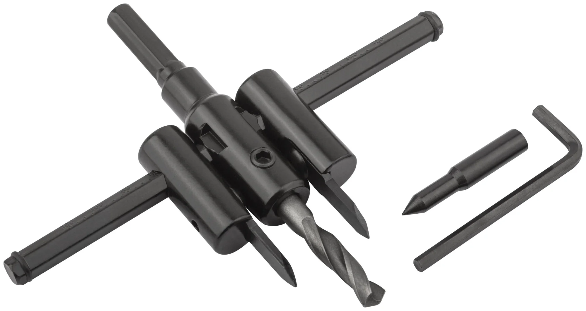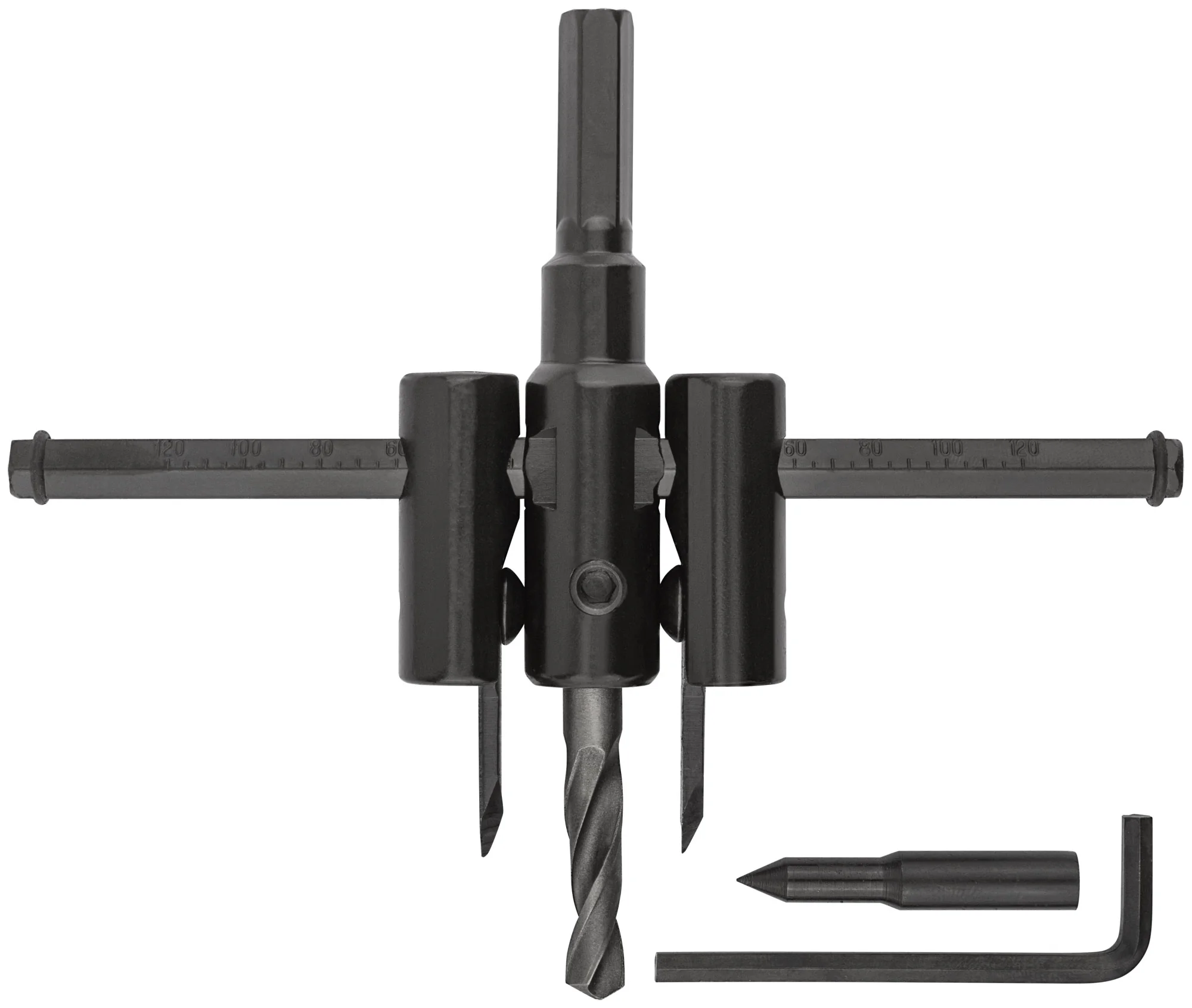 Конструкция пилы включает центральное сверло из инструментальной стали и резцы из легированной стали, обеспечивающие надежность и долговечность. Регулируемый диаметр от 30 до 120 мм позволяет адаптировать инструмент под конкретные задачи.