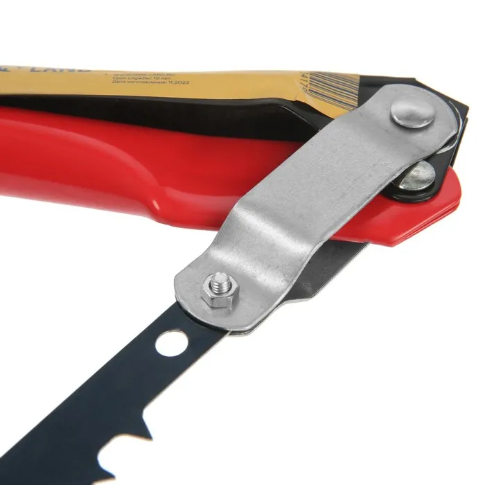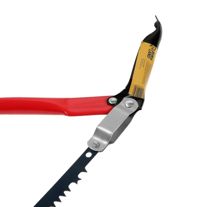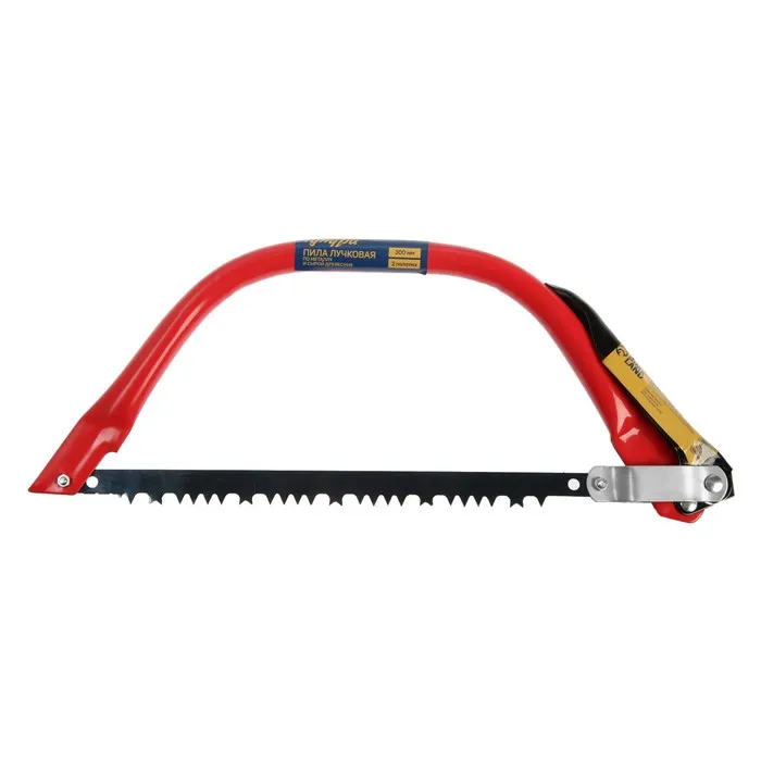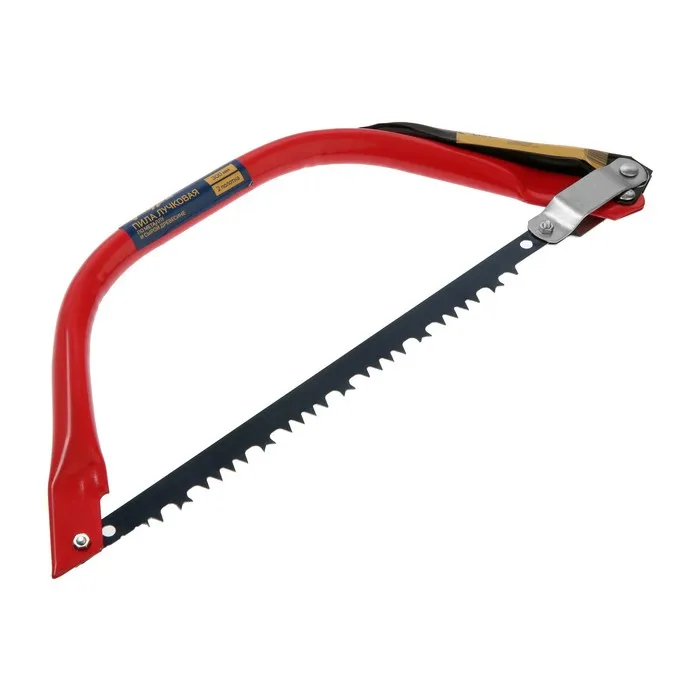 Лучковая пила ТУНДРА предназначена для работы в саду. Инструмент имеет изогнутую скобу, благодаря которой им удобно спиливать ветки и сучки.