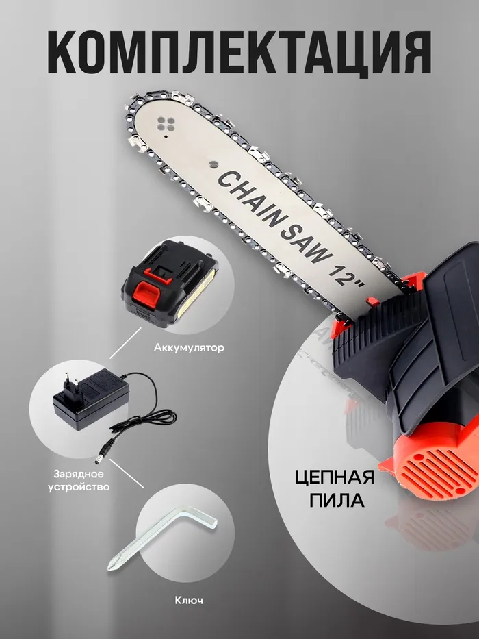 Пила цепная аккумуляторная ТУНДРА, 21 В, 3 Ач, Li-ion, 12", шаг 3/8", 45 звеньев — Характеристики