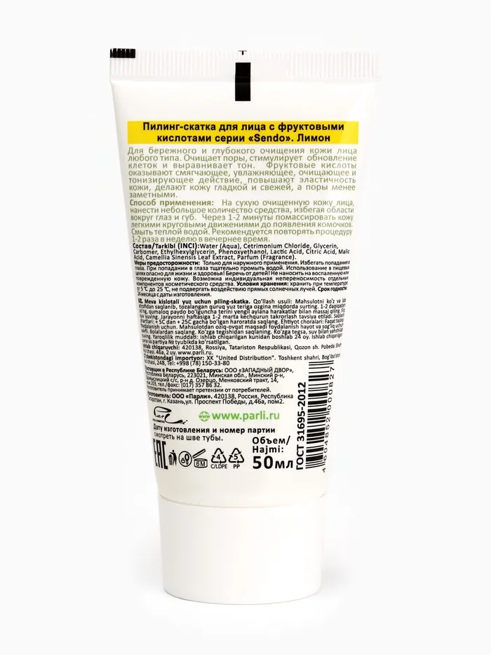 Пилинг-скатка для лица Sendo с фруктовыми кислотами, 50 мл — Характеристики