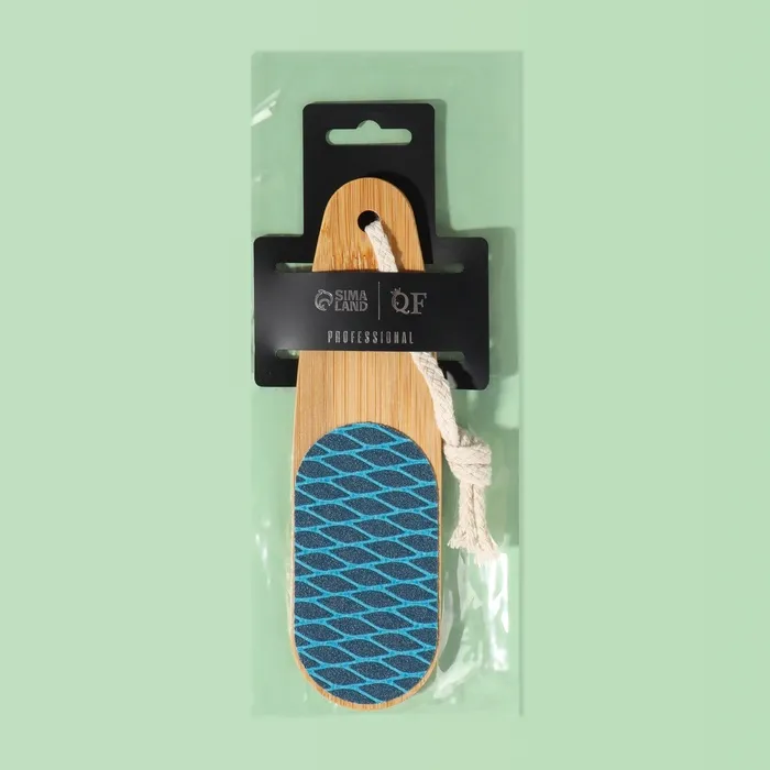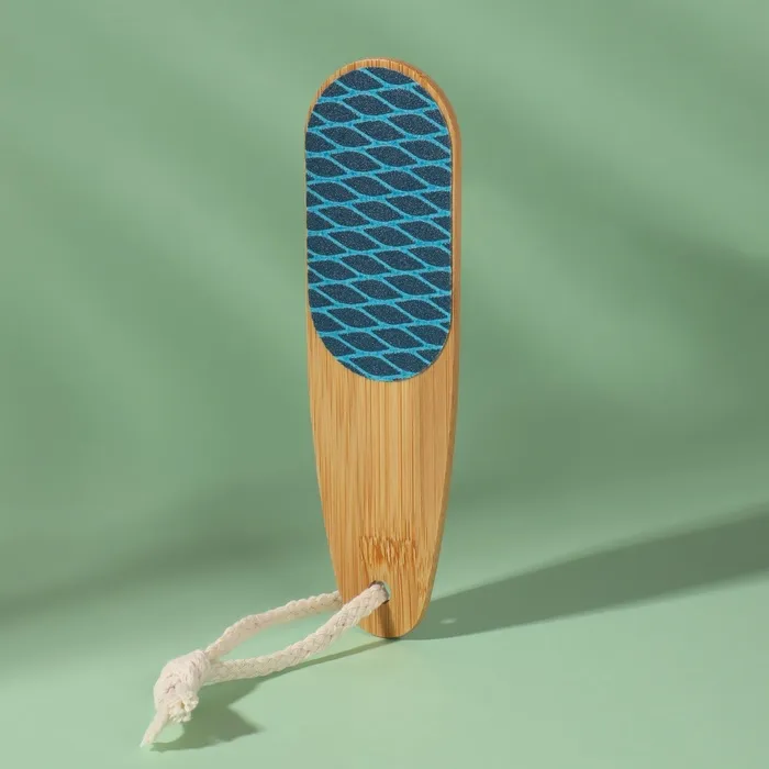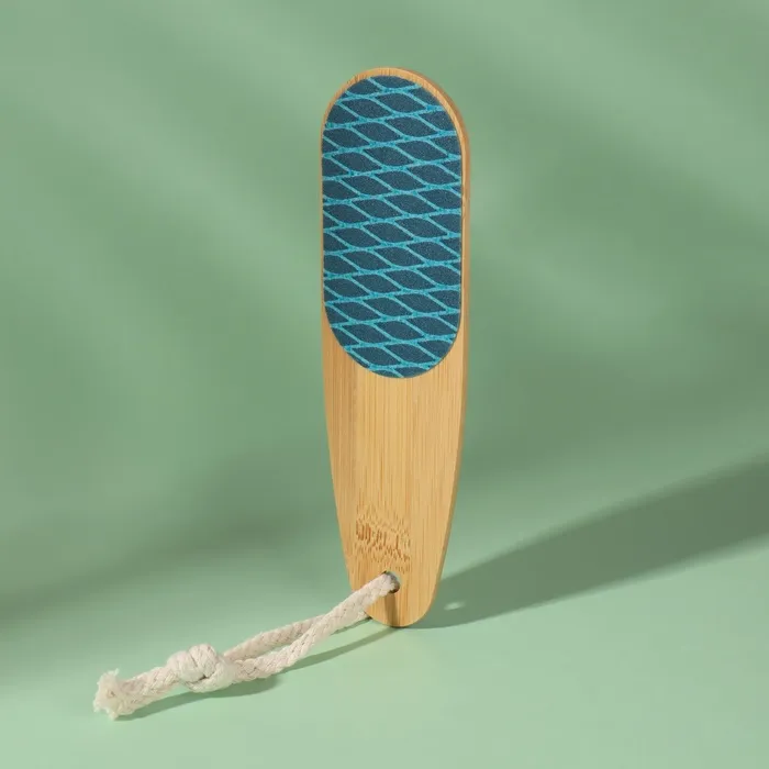 Кожа на ногах не такая нежная, как кожа рук, и требует особого внимания и ухода. Воспользуйтесь тёркой для ног. Двухсторонняя тёрка-наждак – это универсальный помощник в процессе ухода за ногами. Она бережно очистит огрубевшую кожу от мозолей и натоптышей, и ваши пяточки примут здоровый и ухоженный вид. Товар подходит как для женщин, так и для мужчин .Преимущество бамбуковой тёрки заключается в впитывании влаги и пропуск воздуха. С одной стороны находится тёрка, которая поможет удалить огрубевшую кожу, а с другой – наждак, который придаст пяткам мягкость и обработает сухие мозоли. Удобную эксплуатацию педикюрного инструмента обеспечит удобная ручка и подвес.