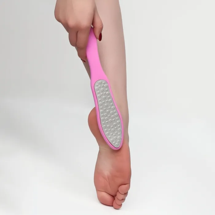 За счёт дизайна, тёркой могут пользоваться не только женщины, но и мужчины. На металлической поверхности с помощью лазера сделаны микрозубчики, которые за 10 пропилов снимут 1 мм огрубевшей кожи. Другая сторона тёрки отполирует уже подготовленный участок до идеального состояния. Проводить такую процедуру можно как на распаренной коже ног, так и на сухой. Комфортную эксплуатацию педикюрного инструмента обеспечит длинная ручка. Между подходами нужно промывать рабочую область в тёплой воде.