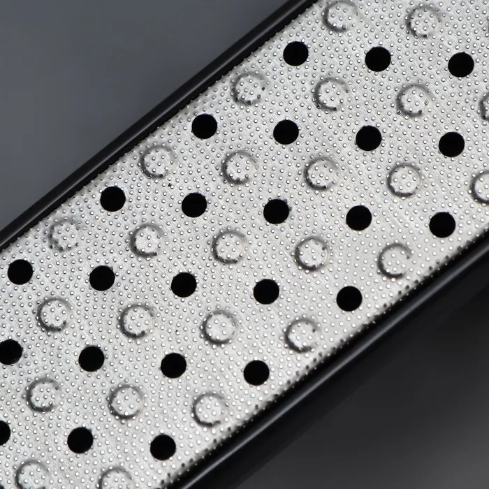 Преимущество лазерной тёрки заключается в её поверхности, так как она достаточно острая и в сравнении с другими она создаёт самый качественный, и в то же время безопасный уход для стоп. Наждачная сторона пилочки для ног (шлифовка) предназначена для более тщательной проработки уже подготовленных ступней до идеального состояния.