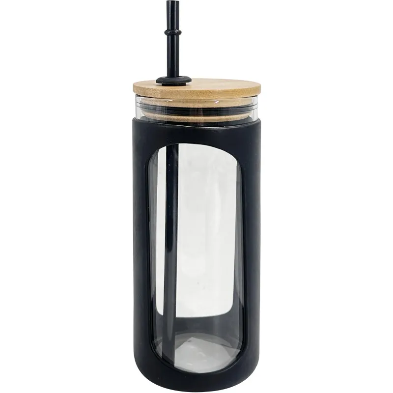 Эта кружка Miny изготовлена из стекла и оснащена черной силиконовой накладкой и красивой бамбуковой крышкой. Размер кружки составляет 7,7 x 18,5 см. Идеально подходит для стильного и удобного питья.