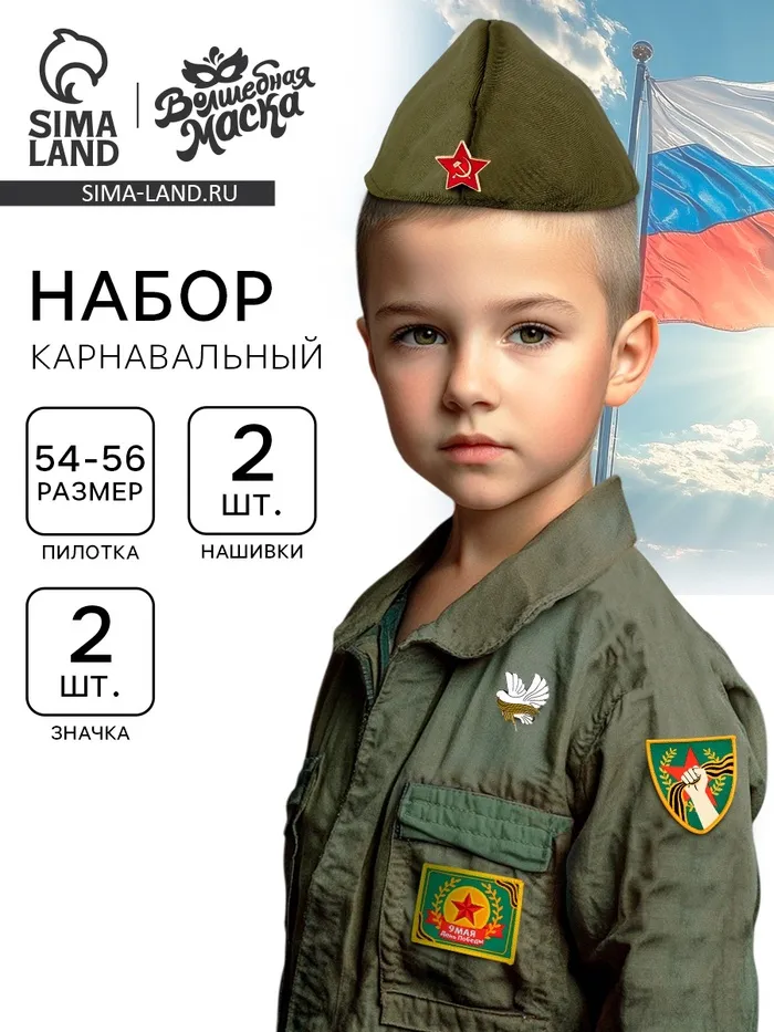 Пилотка на 9 мая «День победы», р-р 54-56, 2 нашивки, 2 значка в комплекте — Характеристики