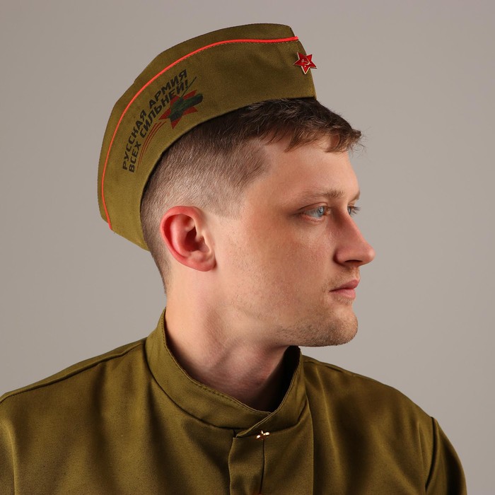 Военный костюм нельзя представить без форменного головного убора. Он превращает любого мужчину в статного офицера с идеальной выправкой. Пилотка солдатская «Русская армия всех сильней» станет изюминкой вашего образа, органичным его завершением. Она дополнит ваш наряд к 23 Февраля, Дню Победы — любому патриотичному празднику.