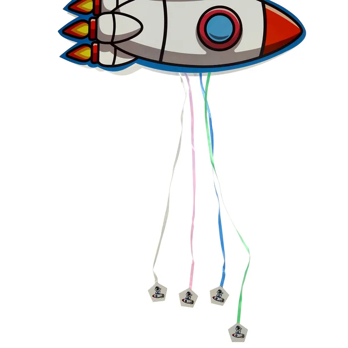 Пиньята «Космонавт с ракетой» с лентами — это увлекательная и безопасная альтернатива традиционной пиньяте. Она представляет собой полую фигуру с яркими лентами.