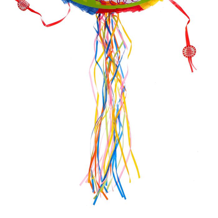 В отличие от традиционной, пиньяту с лентами разбивать не надо. Подвесьте её к потолку или на дерево и по очереди тяните за специальные верёвочки. Только одна из них раскроет пиньяту. Подходит для игры в маленьких помещениях: не придётся замахиваться для удара.