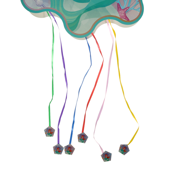 Пиньята «Русалка» с лентами — это увлекательная и безопасная альтернатива традиционной пиньяте. Она представляет собой полую фигуру с яркими лентами.