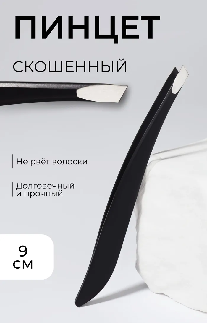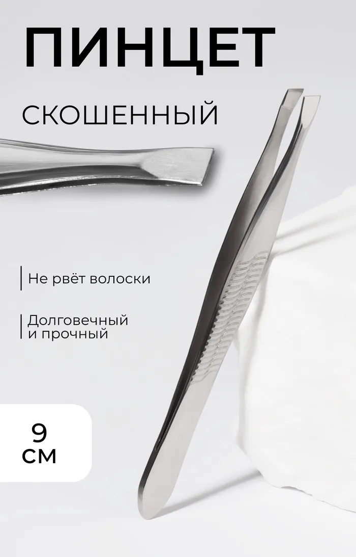Пинцет для бровей и ресниц, со скошенным краем, узкий, 9 см — Характеристики