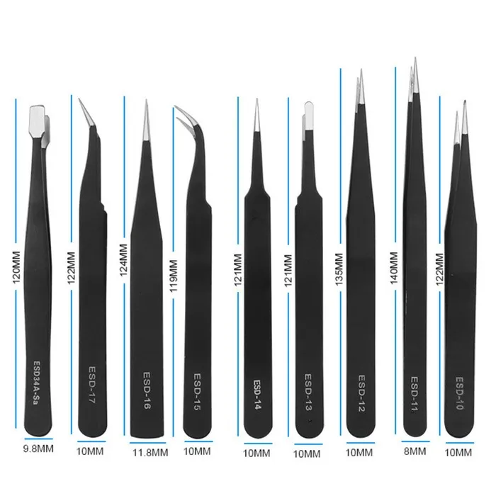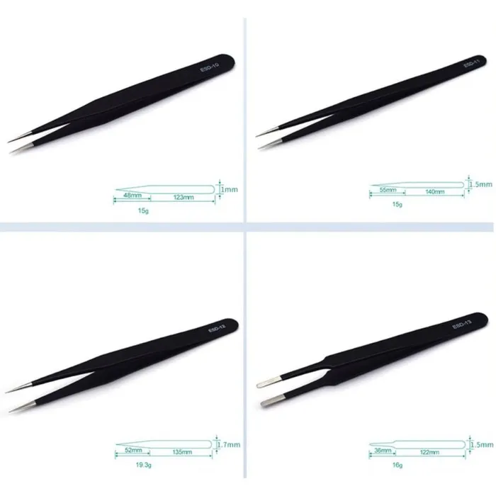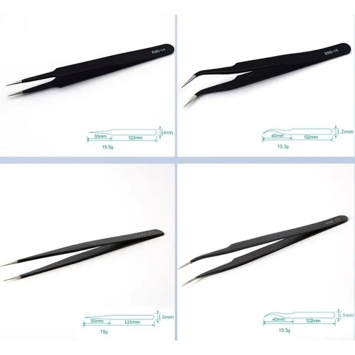 Пинцеты изготовлены из прочной нержавеющей стали.