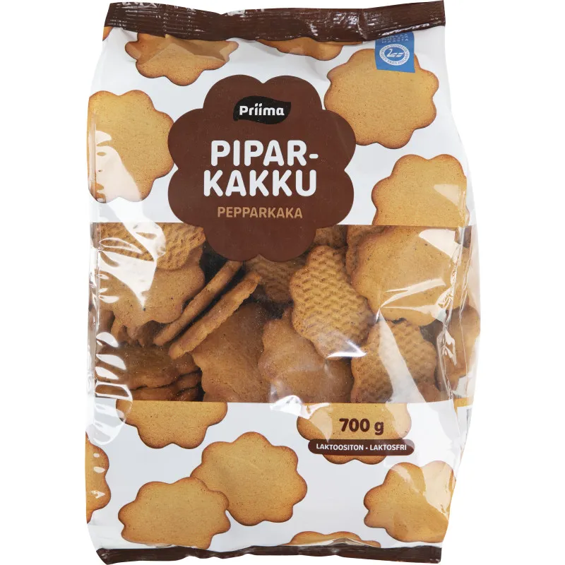 Priima – это готовые к употреблению имбирные пряники! Наслаждайтесь финскими пряниками в повседневной жизни или на рождественском празднике. Большая упаковка в 700 г подходит для всей семьи. Лактозы нет.