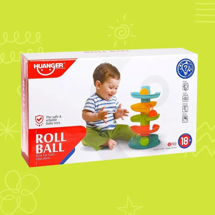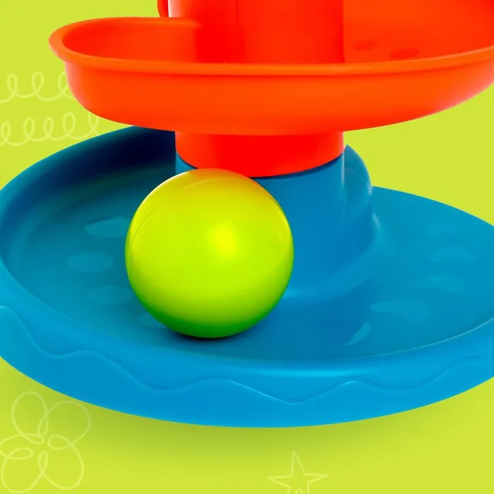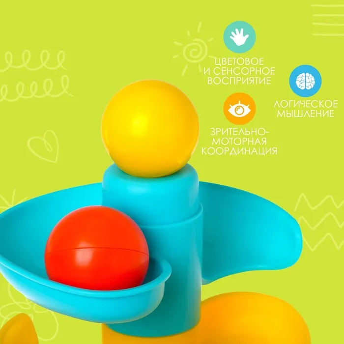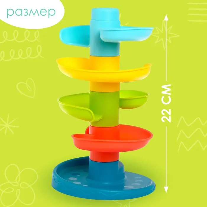 Малыш с удовольствием будет скатывать разноцветные шарики с горки по спирали.