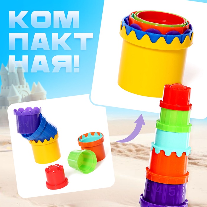 Пирамидка детская, стаканчики для песка, пластик, 32 см