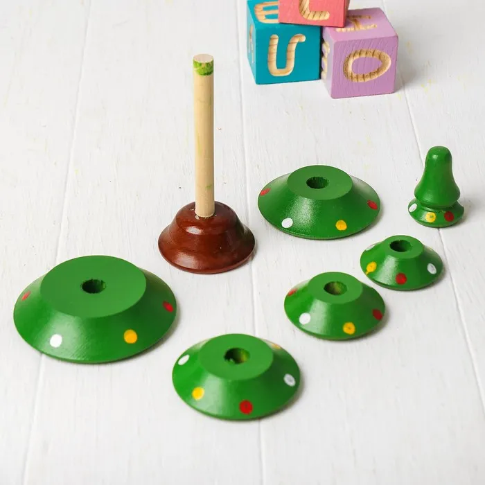 Деревянная пирамидка «Ёлочка» — это увлекательная игрушка, которая помогает малышам развивать моторику, знакомиться с цветами и формами, а также создавать праздничное настроение. Подходит для детей от 3 лет, она станет идеальным выбором для новогодних игр и обучения.