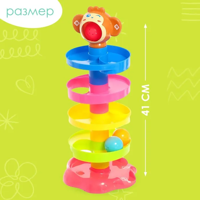 Яркие шарики привлекут внимание малыша, он с удовольствием будет скатывать их по спирали и слушать забавные звуки.