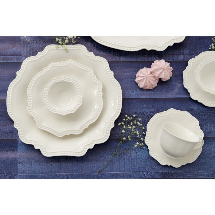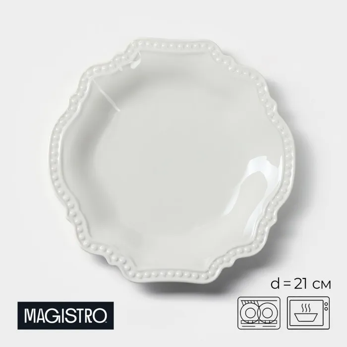 Утончённая коллекция посуды «Сюита» от торговой марки Magistro – отличный выбор для настоящих ценителей эстетики и минимализма. Посуда просто идеальная – белая, лёгкая, с рельефным краем. Она отлично будет сочетаться с другими классическими изделиями, которые уже есть у вас на кухне.